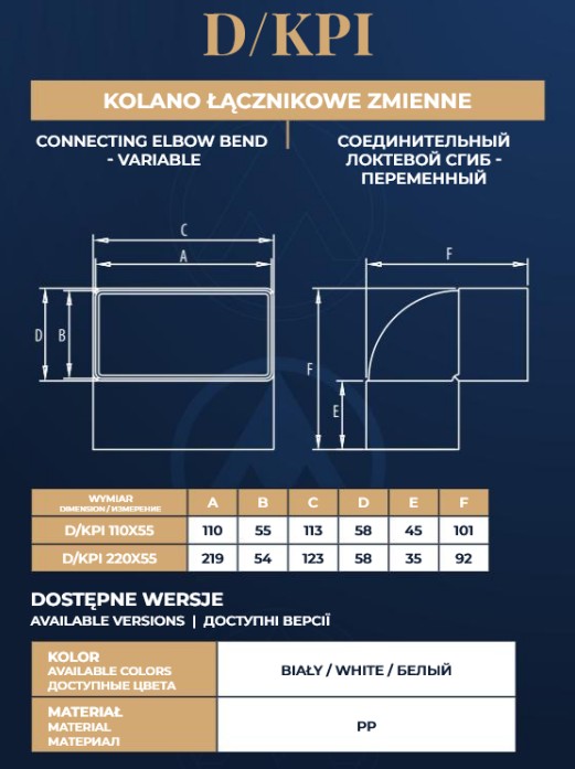 D/KPI 110×55 (kolano pionowe płaskie)