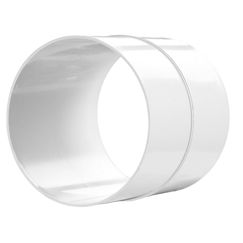 Łącznik kanałów okrągłych wykonany z białego tworzywa ABS.